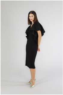 Abito bimateriale con scollatura rotonda e rouches alle spalle. abito dallo stile romantico e femminile.