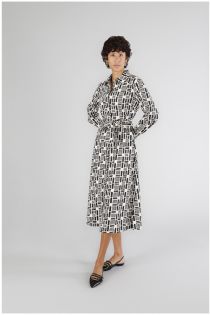 Abito lungo modello chemisier con fusciacca realizzato in popeline di cotone stampato. maniche lunghe risvoltabili. indossalo con i sandali per rendere il tuo look casual ed elegante.