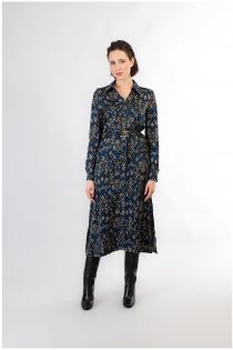 Abito modello chemisier in viscosa stampata. il capo è a maniche lunghe e spacchi laterali. chiusura frontale con bottoni a vista. la sua vestibilità morbida non segna la silhouette. delineato il punto vita grazie alla fusciacca in tessuto con fibbia logata cafènoir.