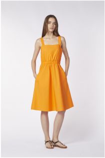 Abito con elasticatura in vita e particolare scollatura a v sul retro