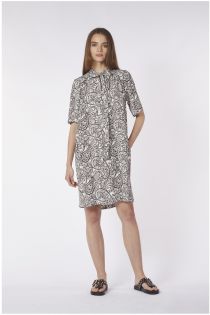 Abito dalla vestibilità morbida in mussola di viscosa con stampa cachemire e fusciacca al collo.