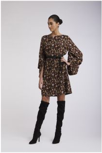 Abito con scollatura a barca e particolarissime maniche balloon. realizzata in una tripla georgette con stampa floreale.