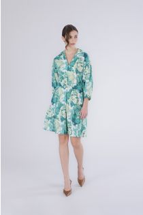 Abito al ginocchio in mussola di cotone stampata leggero e femminile. vita elasticata con cintura e fibbia logata maniche 3/4 con fondo elasticato. ideale per look estivi chic e quotidiani. la modella è alta 171 cm e indossa la taglia s. vestibilità: regular.