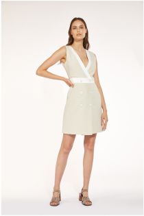 Raffinato e delicato abito doppiopetto dal sapore vintage con cinturino e scollo a contrasto