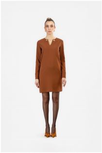 abito dritto con scollo a "v" in tessuto bistretch tabacco