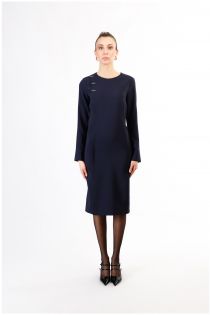 Abito girocollo modello tubino e motivo di finto portafoglio con dettaglio personalizzato a rifinitura. il capo è a maniche lunghe e realizzato in tessuto bistretch. chiusura posteriore tramite zip a scomparsa. abito semplice e versatile perfetto per l'ufficio femminile e nello stesso tempo pratico da tenere sempre nel tuo guardaroba.