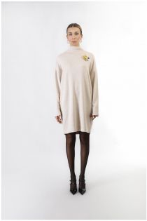 Abito in felpa dalla mano calda. collo alto e applicazione a fiore sulla parte frontale dell'abito. tasche laterali. capo estremamente comodo funzionale e di tendenza.