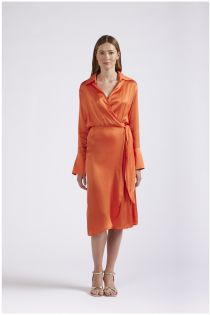 Elegante abito portafoglioo con maniche lunghe realizzato in un leggero satin di viscosa. collo a "v". abito perfetto per un look da cerimonia.