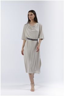 abito lungo con scollo drappeggiato e cintura gesso