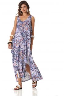Abito lungo dalla linea comoda realizzato in un fresco e cadente jersey stampato.Le rouches laterali evidenziano i tagli e accompagnano la silhouette donando un delicato gusto romantico.