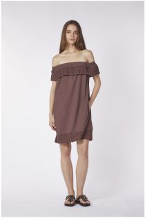 Abito in cotone con ricamo al fondo e alla balza. importante scollatura a barca. ideale per giornate calde o per trascorrere qualche ora al mare.