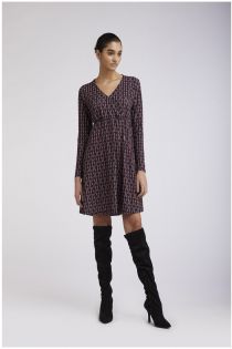 Abito con scollo incrociato e maniche lunghe realizzata in un jersey effetto crepe stampato.
