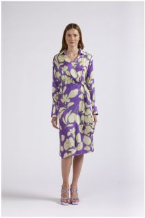 Elegante abito portafoglioo con maniche lunghe realizzato in un leggero satin di viscosa stampata. collo a "v". abito perfetto per un look da cerimonia.