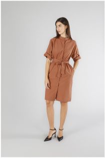 Abito midi modello chemisier e fusciacca in tessuto realizzato in tela paracadute tinto capo. maniche lunghe risvoltabili. spacco sul retro. indossalo con i sandali per rendere il tuo look casual e unico.