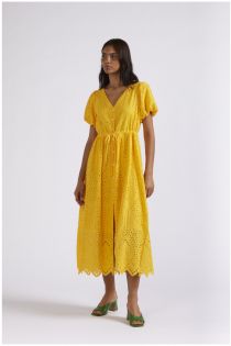 abito tipo chemisier in sangallo giallo
