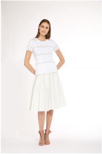 Intramontabile e delicata gonna a mezza ruota in tessuto di cotone con cinturino disponibile in un'ampia palette di colori tinta unita.