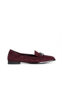 Ballerina in camoscio con morsetto personalizzato. fodera e soletto sono in pelle. tacco alto 15 mm.