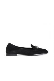 Ballerina in camoscio con morsetto personalizzato. fodera e soletto sono in pelle. tacco alto 15 mm.