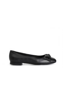 Ballerina in pelle con fiocco e borchie. tacco rivestito alto 15 mm. la fodera e soletto sono in pelle.