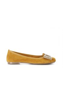 ballerina in pelle scamosciata monocolore con fiocco tempestato di strass giallo