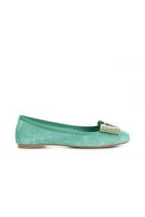 ballerina in pelle scamosciata monocolore con fiocco tempestato di strass verde