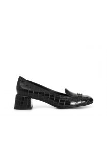 ballerina tacco medio con vaschetta e accessorio in stampa cocco nero