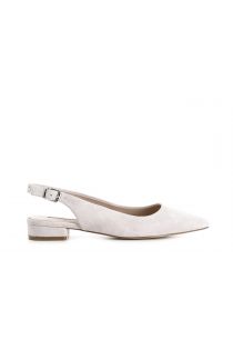 Ballerine in camoscio aperte sul dietro. cinturino con fibbia. soletto in pelle. tacco alto 30mm.