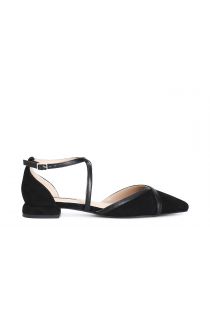 Ballerine in camoscio con incrocio.il soletto è in pelle. calzatura dalla forma sfilata. il tacco è di 2 cm.