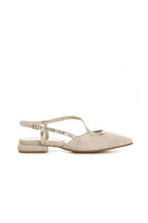 Ballerine bimateriale tono su tono in camoscio con laccio alla caviglia realizzato in similpelle laminata tacco faciato camoscio.