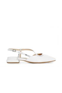 ballerine in nappa e laminato con cinturino e scollatura asimmetrica bianco