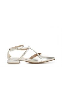ballerine in nappa laminata con laccio alla caviglia osso / platino