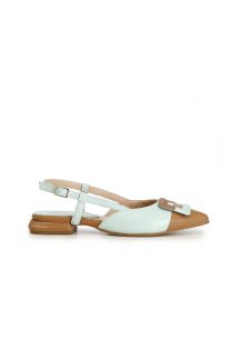 Ballerine aperte dietro in pelle con accessorio quadrato che decora la punta. tacco fasciato pelle.
