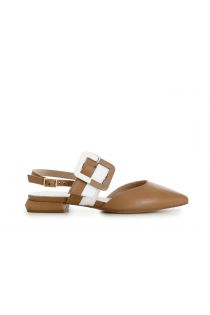 ballerine in pelle dalla punta affusolata con fibbia bicolor cuoio/bianco