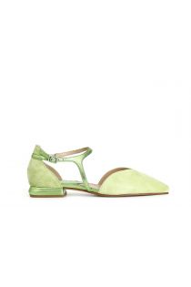 ballerine in pelle scamosciata con laccio laminato asimmetrico verde