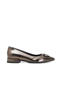 Ballerine in pelle stampata laminata con accessorio metallico dalla forma sfilata