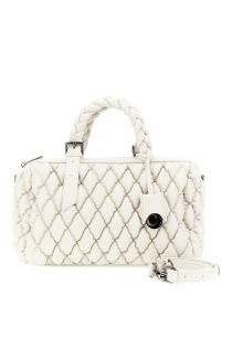 Bauletto effetto nappa con lavorazione goffrata dall'aspetto trapuntato manici a treccia regolabili e charm con logo. dotato di tracollina removibile per una doppia portabilità.