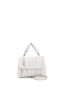 Bauletto con corpo e manico plissettati che creano un delicato effetto onda. ciondolo pendente logato e tracolla removibile in dotazione.