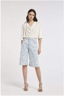 Bermuda di jeans vestibilità regular realizzati in una tela comfort. applicazione di preziosi strass sul davanti