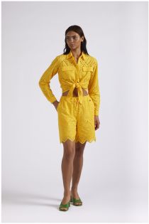 Bermuda con vita elasticata realizzato in tessuto sangallo.