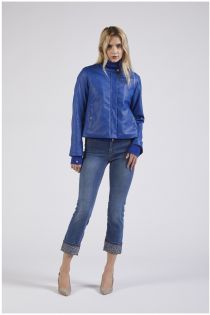 Biker con fodera imbottita e trapuntata realizzato in similpelle con manica lunga.