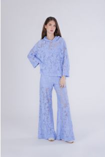 blusa con cappuccio in pizzo celeste