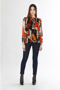 Blusa con laccetto al collo realizzato in georgette di viscosa stampata