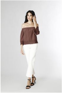 blusa ricamata con scollo a barca espresso