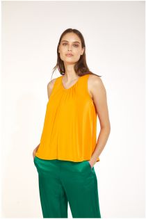 blusa smanicata con scollo a v in viscosa
