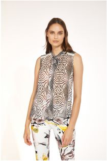 blusa smanicata in voile di viscosa fantasia con decori