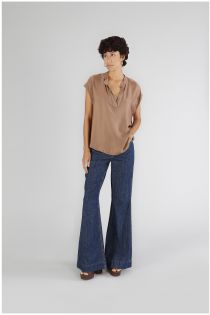 blusa smanicata over bimateriale cacao