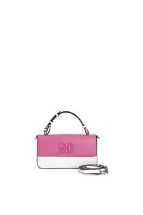 borsa a mano bicolore con logo in tinta, tracolla removibile e pattina fuxia