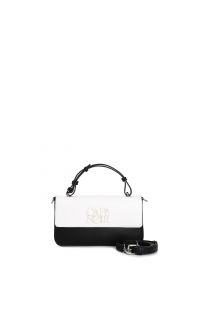 borsa a mano bicolore con logo in tinta, tracolla removibile e pattina nero