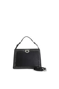 borsa a mano con applicazioni di rivetti e chiusura in metallo nero