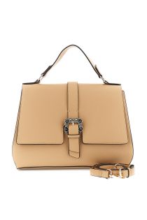Borsa a mano in similpelle con pattina e fibbia gioiello costole a contrasto tramezze interne tasca sul retro e tracollina removibile per versatilità chic.